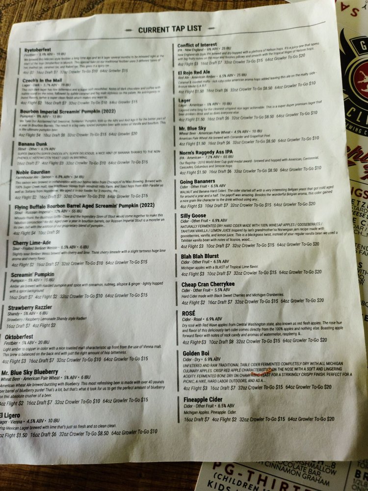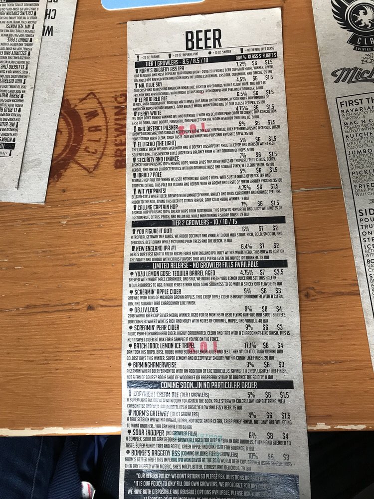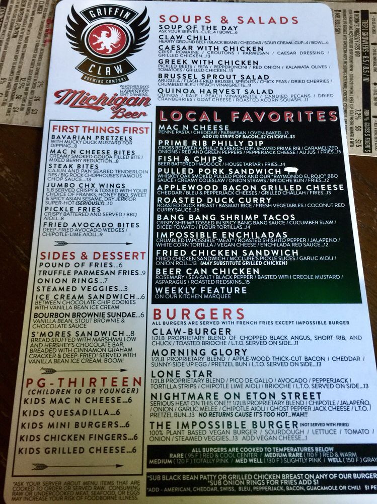 Griffin Claw Birmingham Menu